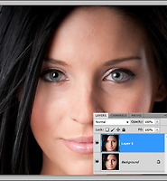이전강좌를 참고하여 1처럼 Ctrl+J키를 눌러 레이어 복사를 하고 얼굴의 피부를 리터칭합니다.