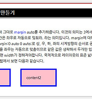 특히 margin에만 있는 특성이 있는데 그것은 값을 auto로 설정하면 브라우저가 자동으로 마진을 설정합니다. 이럴때는 width값이 설정되어 있어야합니다.