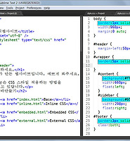 웹디자인의 과정은 먼저 html로 컨텐트를 만들어 놓고 스타일시트 작업을 하면 html페이지는 거의 볼 일이 없습니다. CSS를 적용하고 웹브라우저에서 확인하는 과정이 주로 반복됩니다. content와 sidebar의 상단에만 border를 2픽셀의 수치로 적용하면 다음과 같이 나옵니다.