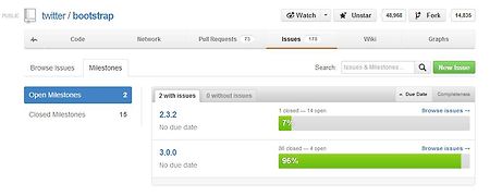 트위터 부트스트랩 3.0 버전이 4월 24일 현재 96% 진행됐습니다. 이전 업로드와 바뀐 것은 대부분 버그 수정입니다. 2.3.2 버전 수정이 7 퍼센트 진행됐습니다. 문서 초기 화면인 index.html 파일의 화면이 아주 단순하게 변경됐습니다. 부트스트랩 3.0 미리보기 --> http://twitter-bootstrap.kr/bootstrap3/ 내려받기-->