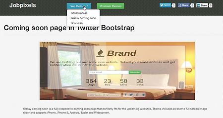 아래의 링크로 이동하면 3개의 부트스트랩 템플릿을 내려받을 수 있습니다. http://jobpixels.com/bootbusiness.html Coming soon page 이중에서 Coming soon page 템플릿은 웹사이트를 개발할 때 공개하기 전에 첫 화면으로 사용하면 좋습니다. 웹사이트 공개시까지의 시간을 설정해서 카운트 다운 할 수 있습니다. 방법은 파일을 내려받아서 js 폴더에서 coming-soon.js 파일을 열고 until: '+1y'로 돼있는 것을 다음과 같이 수정합니다. $(".timer").countdown({ until: new Date(2013, 7, 1), 2013년 7월 1일 사이트를 연다는 것이므로 이 날짜를 기준으로 카운트 다운하게 됩니다. 해당 날짜를 기준으로 시간이..