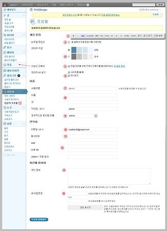 워드프레스는 블로그를 만들 수 있을뿐만아니라 웹사이트를 만들 수도 있습니다. 블로그는 소통을 위한 인터넷 도구가 되기도 하지만 사업적 목적의 웹사이트를 만들면 프로필은 방문자에게 사이트 소유자와 접근할 수 있는 정보를 제공하게 됩니다. 워드프레스닷컴에서 가입형 블로그 서비스로 블로그나 웹사이트를 만들면 전화번호까지 입력할 수 있지만 설치형 블로그는 전화번호를 입력할 란이 없습니다. 이번 글에서는 워드프레스 블로그 관리자의 정보를 입력할 수 있는 프로필과 회원 등록, 회원정보 관리에 대해서 알아봅니다. 1. 관리자 프로필 등록 워드프레스에서 관리자의 프로필은 구글이나 야후같은 검색엔진에 노출이 되므로 신중하게 작성해야합니다. 사용자메뉴에서 당신의 프로필을 클릭하면 우측에 화면이 나옵니다. 2의 비주얼 편집..