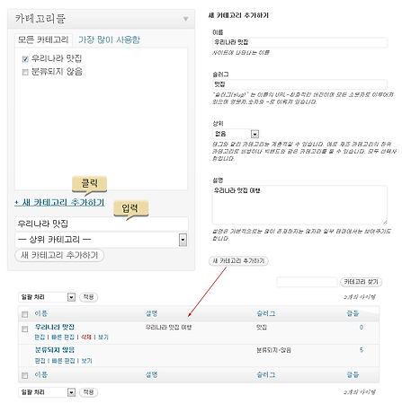 6. 카테고리와 태그 블로그에 글을 올리다 보면 처음에는글이 별로 없어서 글의 종류별로 분류할 필요를 못 느낍니다. 점차 글의 수가 늘어나면 자신의 글임에도 찾으려면 한참 걸리고 그제서야 글을 분류해서 놓아야겠다는 생각이 들게 되죠. 워드프레스는 이러한 글의 분류를 위해 다양한 형태의 옵션을 제공합니다. 워드프레스에서 글을 작성하면 기본적으로는 시간적 역순으로 분류를 해놓습니다. 가장 나중에 쓴 글이 가장 처음 페이지에 보이게 되죠. 글은 년도별, 월별, 일자별로 분류됩니다. 또한 검색 입력란에 검색어를 이용하여 찾을 수도 있습니다. 가장 보편적으로 사용하는 방법이 글을 어떤 주제를 정해 놓고 카테고리로 정한 다음, 주제에 해당하는 글을 이 카테고리에 포함시킵니다. 또한 글 중에 나오는 키워드를 태그로 ..