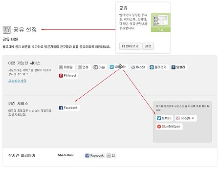 워드프레스의 공유 버튼 플러그인은 여러가지가 있지만 젯팩(Jetpack) 플러그인 팩을 설치하면 간단하게 사용할 수 있습니다. 젯팩 페이지의 공유 설정 버튼을 클릭하거나 설정-->공유를 클릭하면 위와같은 화면이 나타납니다. 여러가지 공유 버튼을 클릭하여 켜진 서비스나 우측의 짙은 회색 영역에 드래그해 배치하면 됩니다. 짙은 회색 영역은 블로그 화면에서 처음에는 나타나지 않고 더보기 버튼에 마우스를 올리면 나타나는 영역입니다. 하단에서 실시간 미리보기에 나타납니다. 버튼 스타일을 선택하고 공유 레이블은 표시되는 제목을 바꿀 수 있습니다. "다음에서 링크 열기"는 버튼을 클릭했을 때 새 창에서 열 것인지 같은 창에서 열것인지 선택할 수 있고 "다음에 버튼 표시"는 버튼이 표시될 영역을 선택할 수 있습니다. ..
