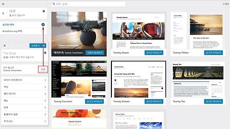 워드프레스 4.9 버전이 11월 14일 정식 출시를 앞두고 RC1 버전을 발표했습니다. 한글 번역은 완료된 상태이고 추가적인 스트링 업데이트가 있으면 계속 업데이트 할 예정입니다. 이번 버전에서는 주로 테마와 관련된 부분 특히 사용자 정의하기 화면에서 많이 바뀌었습니다. 항목별로 알아보겠습니다. 테마 변경 사용자 정의하기에서 설치된 테마 우측의 "변경" 버튼을 클릭하면 우측 화면에 설치된 테마가 나타납니다. 변경하고자 하는 테마의 실시간 미리보기 버튼을 클릭하면 테마가 변경되고 활성화가 가능한 버튼이 나타납니다. WordPress.org 테마를 체크하면 워드프레스 저장소의 테마를 검색해 설치할 수 있습니다. 테마 필터 버튼을 이용할 수도 있습니다. 테마 변경 저장하기, 임시글 저장하기, 예약하기 사용자 ..