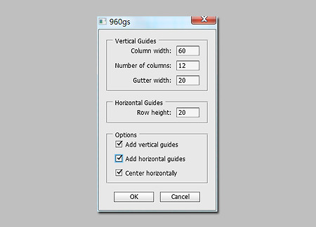 포토샵에서 가이드선(안내선)을 자동으로 그려주는 스크립트입니다. 설치는 아래 파일을 다운로드하여 압축해제한 다음 포토샵을 닫고 960gs.jsx 파일을 포토샵 폴더의 프리셋/스크립트 폴더에 복사 붙여넣기 하면 됩니다. 윈도우 64비트버전인 경우 다음의 폴더입니다. C:\Program Files\Adobe\Adobe Photoshop CS5 (64 Bit)\Presets\Scripts 맥은 다음의 폴더입니다. /Applications/Adobe Creative Suite 5/Adobe Photoshop CS5/Presets/Scripts 포토샵을 열고 새문서를 만든 뒤 메뉴에서 편집-스크립트를 선택하면 960gs 메뉴가 있습니다. 이것을 클릭하면 위와같은 창이 나옵니다. 컬럼은 세로열이고 거터는 컬럼간의 ..
